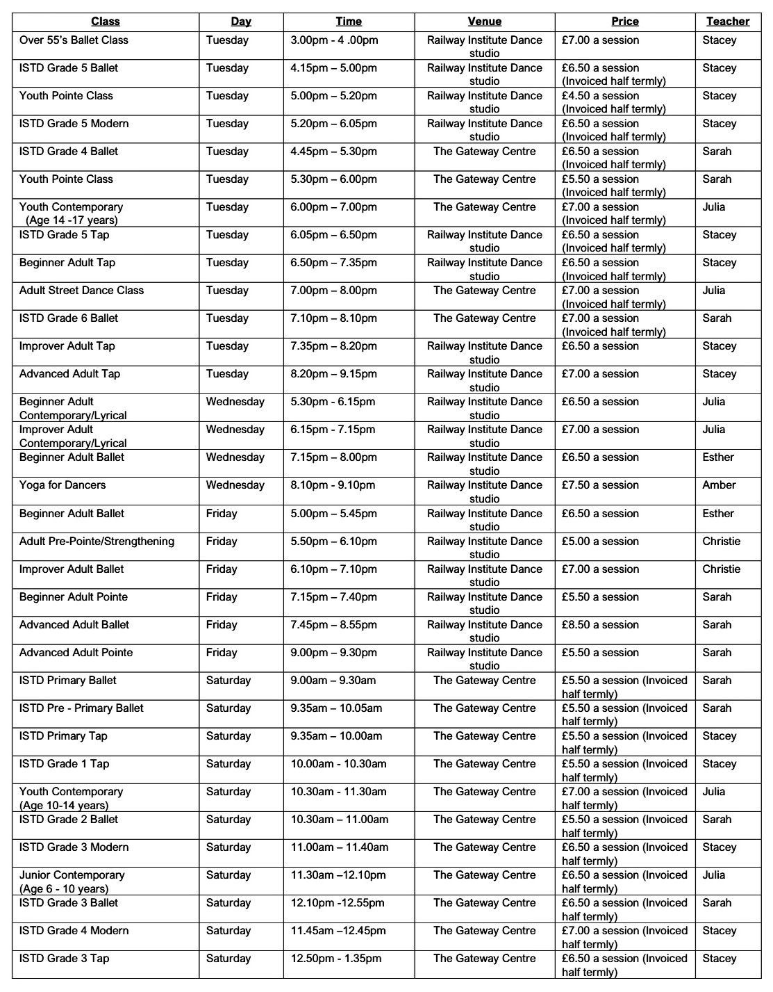 Class fees are invoiced half termly for the Children's and Syllabus classes.